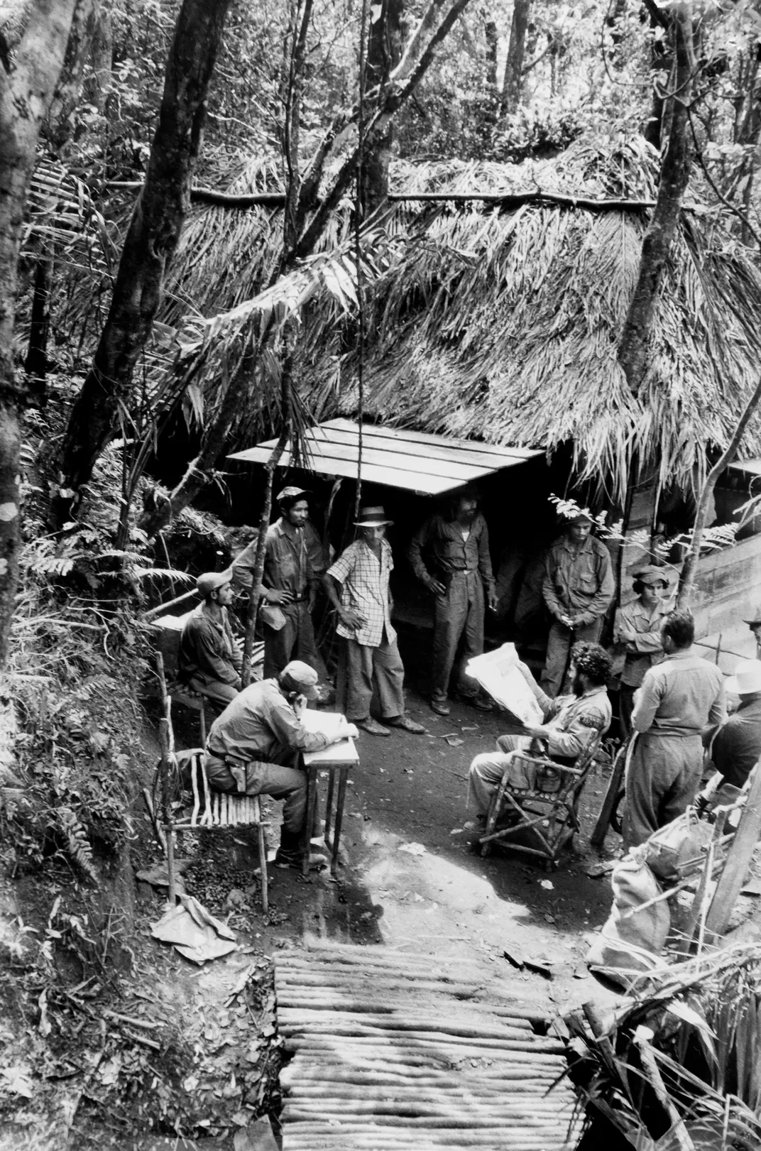 Fidel Castro and fellow revolutionaries in their Sierra Maestra encampment, 1958 — plotting strategy in the rugged mountains that became the cradle of Cuba’s liberation movement.